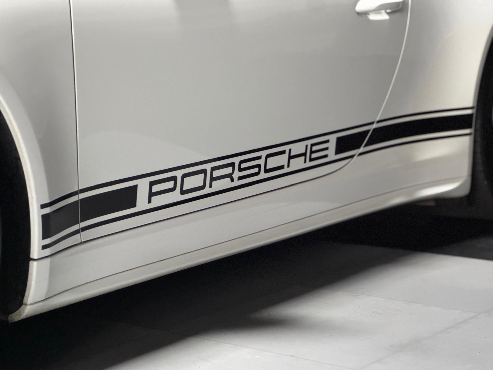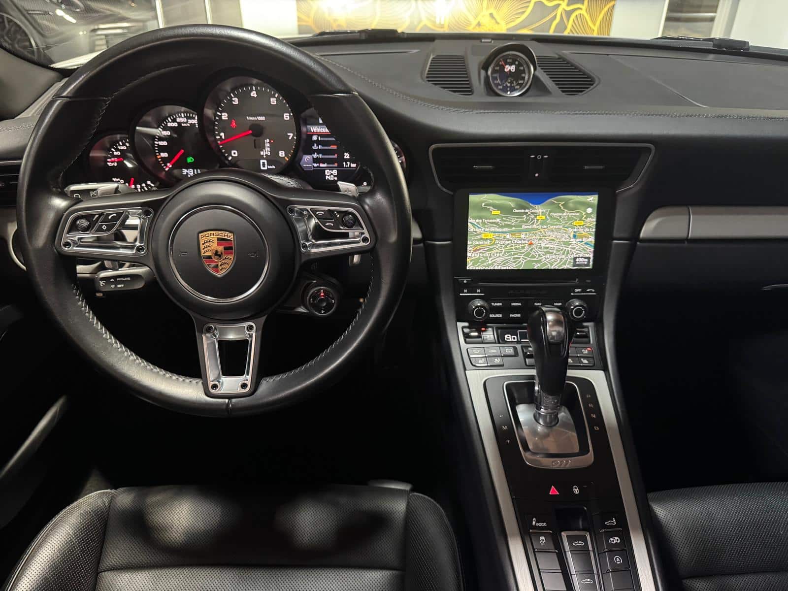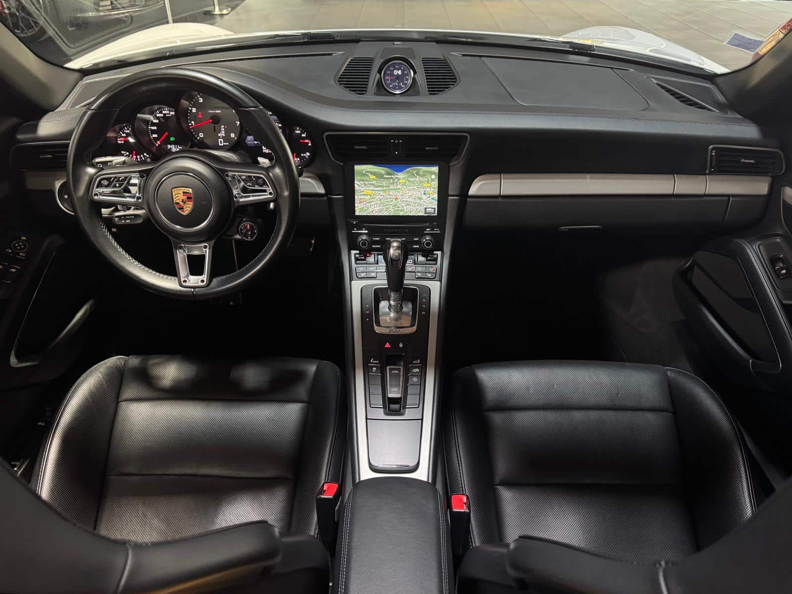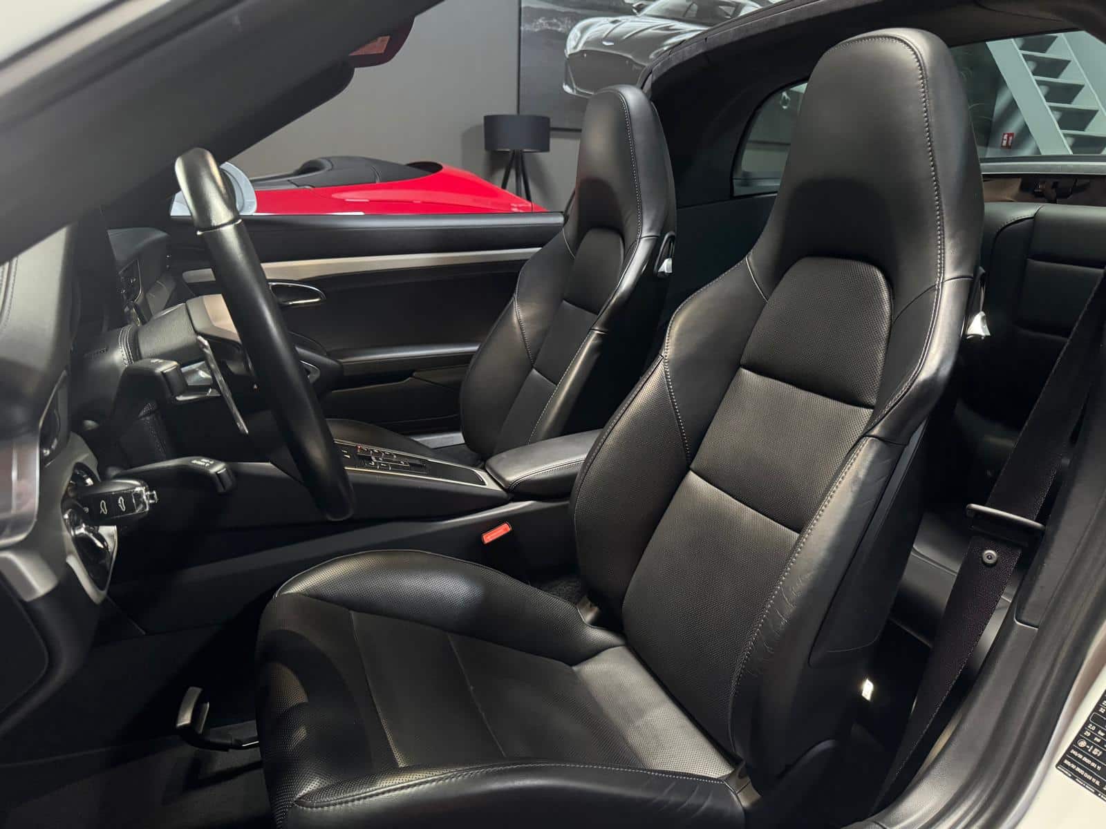 Porsche 911 type 991 phase 2 Targa 4S 3.0 de 420 ch avec boîte PDK 7 rapports et transmission intégrale. Présentée en blanc avec intérieur tout cuir noir et capote noire, elle offre l’expérience unique de la 911 Targa entre coupé et cabriolet. Véhicule français avec historique et entretien exclusif Porsche, configuration riche de 28 824 € d’options, disponible avec garantie 12 mois.